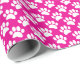 Papier Cadeau Tiny Dog Paw Print Pattern In White and Hot Pink