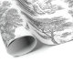 Motif en toile blanche noire avec jeunes hommes et femmes travaillant et se relaxant dans le bois pour un décor rustique de campagne.