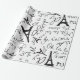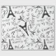Joli papier d'emballage parisien ce design est illustré sur un arrière - plan blanc, il y a de l'écriture française et des dessins de serviettes Eiffel en noir. Customisez-vous aujourd'hui !