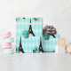 Papier d'emballage bleu turquoise et noir sur le thème parisien.