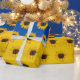 Papier Cadeau Tournesol de coeur sur bleu et jaune