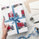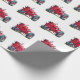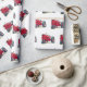 Papier Cadeau Tracteur de ferme rouge rétro en blanc