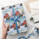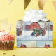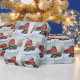 Papier Cadeau Tracteur vert de Noël par une grange rouge