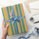 Papier Cadeau Traditional Stripe Pattern Teal Green and Mustard