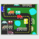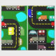 Il a une conception géométrique des camions et des voitures sur une route et dans un parking. Parfait pour vos enfants d'anniversaire.