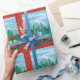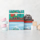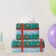 Papier d'enveloppement de train de Noël en rouge, vert et bleu ciel.