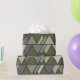 Ce papier d'emballage a une conception moderne du milieu du siècle de triangles superposés courant horizontalement dans les couleurs camo.