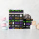 Trick ou Treat Halloween papier d'emballage avec fantômes et chauves-souris. les mots Trick ou Treat sont dans les couleurs classiques d'Halloween de l'orange, vert ou violet. Vous pouvez rendre ce motif Halloween plus petit ou plus grand sur le papier d'emballage.