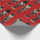 Ce papier d'emballage comporte trois craquelins traditionnels, un avec une paire de cymbales, un avec une hache et un avec une épée contre un arrière - plan rouge foncé. Parfait pour envelopper tous les cadeaux de Noël dans.