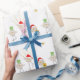 Un papier d'emballage de Noël amusant et festif avec des illustrations fantaisistes de trois petits oiseaux avec chacun un cadeau de Noël. Natalie Kinnear Designs