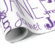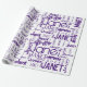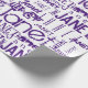 Papier d'emballage typographique en violet et blanc pouvant être personnalisé avec un nom ou un mot.
