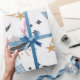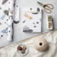 Un vaisseau spatial avec étoiles et papier d'enveloppement de lune. Idéal pour les anniversaires ou les baby showers !
