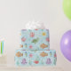 Make a splash with this playful under-the-sea design featuring friendly turtles, clownfish, seahorses, octopuses, starfish, and coral, all swimming across a soft blue background with bubbles and waves. Perfect for kids’ birthdays, ocean-themed parties, or beachside celebrations, this wrapping paper brings colour, character, and fun to every gift.