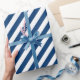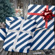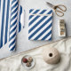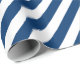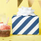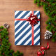 Un papier d'emballage bleu marine et blanc large bande de vacances avec des rayures bleu marine sur la diagonale.