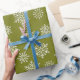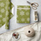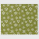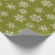 Un emballage cadeau élégant pour les vacances et les événements d'hiver. Des flocons de neige blancs et gris clair de tailles légèrement différentes sur un arrière - plan vert olive. Le design est disponible dans une collection couronnée de couleurs de vacances modernes. Contactez-nous pour toute personnalisation. Joyeuses vacances !