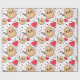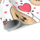 Cute, kawaii potato holding a red love heart balloon in one hand and a heart flower in the other. A cute seamless pattern ideal for Valentines Day