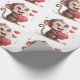 Papier Cadeau Valentine's Day Wrapping Paper Monkey Red Hearts
