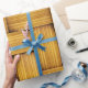 Ce papier d'emballage a l'air amusant avec leur grand motif en osier tissé dans des tons plus clairs de tanins. C'est amusant, festif et unique et ajoutera une touche de couleur à votre cadeau.