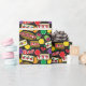 Emballage cadeau sur le thème du casino couvert de jackpots machine à sous, cerises, melons et jetons de poker