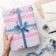 Un design cool avec des bicyclettes roses avec un ruban rose pour la sensibilisation au cancer attaché aux guidons, une bordure amusante de bandes.
