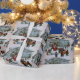 Noël de père dans une robe longue rouge se repose placé sur la neige tandis qu'entouré avec des enfants dans l'habillement de période.