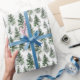 Papier Cadeau Vert Aquarelle Pine Forêt sur Blanc