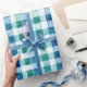 Papier Cadeau Vert Blanc Bleu Trappe Plaid Noël