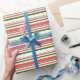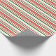 Ce papier d'emballage est décoré d'un motif de rayures de couleurs de Noël vert, blanc et rouge. Envelopper du papier comme celui-ci peut être amusant à utiliser pour envelopper des cadeaux ou des cadeaux donnés pour célébrer un anniversaire, un mariage, un anniversaire ou tout autre événement.