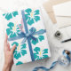 Papier Cadeau Vert de mer clair sur Hibiscus blanc