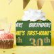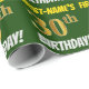 Ce papier d’emballage comporte un message comme "FIRST-NAME’S 30th BIRTHDAY!", avec le "30th" ayant une apparence de couleur fausse/imitation or, et avec le nom et "BIRTHDAY" dans une police amusante et audacieuse. Le nom peut être customisé, et l'arrière - plan est vert de couleur. Un papier comme celui-ci pourrait peut-être être utilisé pour envelopper les cadeaux d'anniversaire donnés à quelqu'un pour célébrer leur trentième anniversaire. [~Z0000208]