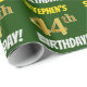Ce design papier d’emballage comporte un message comme "44e anniversaire de STEPHEN!", avec le "44e" ayant une apparence de couleur fausse/imitation or, et avec le nom et "ANNIVERSAIRE" dans une police amusante et audacieuse. Le nom est personnalisable, et l'arrière - plan est en couleur verte. Un papier comme celui-ci pourrait peut-être être utilisé pour envelopper les cadeaux d'anniversaire donnés à quelqu'un pour célébrer leur quarante-quatrième anniversaire. [~Z0000208]