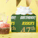 Ce design papier d’emballage comporte un message comme "47e anniversaire de JESSICA!", avec le "47e" ayant une apparence de couleur fausse/imitation or, et avec le nom et "anniversaire" dans une police amusante et audacieuse. Le nom peut être customisé, et l'arrière - plan est vert de couleur. Un papier comme celui-ci pourrait peut-être être utilisé pour envelopper les cadeaux d'anniversaire donnés à quelqu'un pour célébrer leur quarante-septième anniversaire. [~Z0000208]