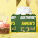 Ce design papier d’emballage comporte un message comme "ANDREW’S 52nd BIRTHDAY!", avec le "52nd" ayant une apparence de couleur fausse/imitation or, et avec le nom et "BIRTHDAY" dans une police amusante et audacieuse. Le nom peut être personnalisé, et l'arrière - plan est vert couleur. Un papier comme celui-ci pourrait peut-être être utilisé pour envelopper les cadeaux d'anniversaire donnés à quelqu'un pour célébrer son cinquante-deuxième anniversaire. [~Z0000208]