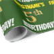 Ce design papier d’emballage comporte un message comme "FIRSTNAME’S 5th BIRTHDAY!", avec le "5th" ayant une apparence de couleur fausse/imitation or, et avec le nom et "BIRTHDAY" dans une police amusante et audacieuse. Le nom peut être customisé, et l'arrière - plan est vert de couleur. Un papier comme celui-ci pourrait peut-être être utilisé pour envelopper les cadeaux d'anniversaire donnés à quelqu'un pour célébrer leur cinquième anniversaire. [~Z0000208]
