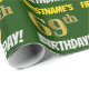 Ce papier d’emballage comporte un message comme "FIRSTNAME’S 69th BIRTHDAY!", avec le "69th" ayant une apparence de couleur fausse/imitation or, et avec le nom et "BIRTHDAY" dans une police amusante et audacieuse. Le nom peut être customisé, et l'arrière - plan est vert de couleur. Un papier comme celui-ci pourrait peut-être être utilisé pour envelopper les cadeaux d'anniversaire donnés à quelqu'un pour célébrer son soixante-neuvième anniversaire. [~Z0000208]