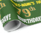 Ce papier d’emballage comporte un message comme "FIRST-NAME’S 79th BIRTHDAY!", avec le "79th" ayant une apparence de couleur fausse/imitation or, et avec le nom et "BIRTHDAY" dans une police amusante et audacieuse. Le nom peut être personnalisé, et l'arrière - plan est vert couleur. Un papier comme celui-ci pourrait peut-être être utilisé pour envelopper les cadeaux d'anniversaire donnés à quelqu'un pour célébrer leur soixante-dix-neuvième anniversaire. [~Z0000208]