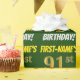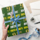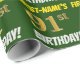 Ce papier d’emballage comporte un message comme "FIRST-NAME’S 91st BANTHDAY!", avec le "91st" ayant une apparence de couleur fausse/imitation or, et avec le nom et "BANTHDAY" dans une police amusante et audacieuse. Le nom peut être personnalisé, et l'arrière - plan est vert couleur. Un papier comme celui-ci pourrait peut-être être utilisé pour envelopper les cadeaux d'anniversaire donnés à quelqu'un pour célébrer leur quatre-vingt-dix-unième anniversaire. [~Z0000208]