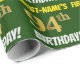 Ce papier d’emballage comporte un message comme "FIRST-NAME’S 94th BIRTHDAY!", avec le "94th" ayant une apparence de couleur fausse/imitation or, et avec le nom et "BIRTHDAY" dans une police amusante et audacieuse. Le nom peut être customisé, et l'arrière - plan est vert de couleur. Un papier comme celui-ci pourrait peut-être être utilisé pour envelopper les cadeaux d'anniversaire donnés à quelqu'un pour célébrer son quatre-vingt-quatorzième anniversaire. [~Z0000208]