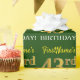 Ce design papier d’emballage comporte un message comme "43e anniversaire de prénom!", le "43e" ayant une apparence de couleur fausse/imitation or. Le nom peut être customisé, et l'arrière - plan est vert de couleur. Il pourrait peut-être être utilisé pour envelopper les cadeaux donnés pour le quarante-troisième anniversaire de quelqu’un. [~Z0000179]