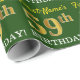 Ce design papier d’emballage comporte un message comme "59e anniversaire de prénom !", avec le "59e" ayant une apparence de couleur fausse/imitation or. Le nom peut être personnalisé, et l'arrière - plan est vert couleur. Il pourrait peut-être être utilisé pour envelopper les cadeaux donnés pour le cinquante-neuvième anniversaire de quelqu’un. [~Z0000179]