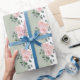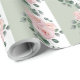 Papier d'emballage simple élégant vert sauge clair et blanc avec un bouquet de roses roses - parfait pour les mariages, les enterrements de vie de jeune fille et les anniversaires.
