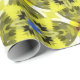 Roll of decorative paper with a vibrant geometric pattern in yellow, green, and blue hues. The design features star-like shapes, evoking a lively, energetic tone.