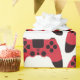 Papier d'emballage cadeau Gamer avec un motif de contrôleurs de jeu de console rouge. Idéal pour votre ami geek ou autre significatif qui aime jouer à des jeux vidéo.