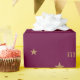 Un riche arrière - plan de couleur Vin avec des étoiles Tan-Golden dans des tailles moyennes et petites dispersées dans un motif avec un texte de Joyeux Noël écrit partout. Customisez ceci ou achetez tel quel.
