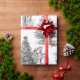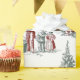A vintage toile pattern in red and pine green showing charming Christmas tree scenes and Victorian figures. Elegant gift wrap with a nostalgic, storybook feel, perfect for presents, mantel displays, and festive styling.