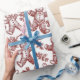 A nostalgic red Christmas gift wrap in vintage toile style, patterned with gingerbread people and pine sprigs in delicate line art. The red on white artwork feels classic and bakery sweet, perfect for cookie exchanges, teacher gifts, and festive packages. Pair with twine, velvet ribbon, or kraft tags for a timeless finish.