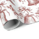 A nostalgic red Christmas gift wrap in vintage toile style, patterned with ribbon tied bells and little holly sprigs in delicate line art. The red on white artwork feels classic and festive under the tree. Pair with velvet ribbon or simple twine for a timeless finish.