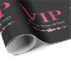 Ce papier d'emballage glamour présente un design VIP sur un arrière - plan noir. Le titre VIP est imprimé dans une police de style feuille rose, suivi du titre de l'événement. Des cordes de diamants roses séparent le texte. Un exemple de nom ou d'événement est imprimé au-dessus des diamants que vous pouvez personnaliser pour inclure votre propre nom ou texte personnalisé. Il est parfait pour une fête d'anniversaire, 16 sucré, douche nuptiale, ou toute autre célébration élégante.
