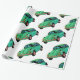Original, dessin artistique d'une voiture hippie verte avec éléments mandala dessus, emballage cadeau spécial, papier d'emballage pour les occasions spéciales.