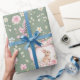 Papier Cadeau Whimsical Bunny Teapot Spring Floral Pattern